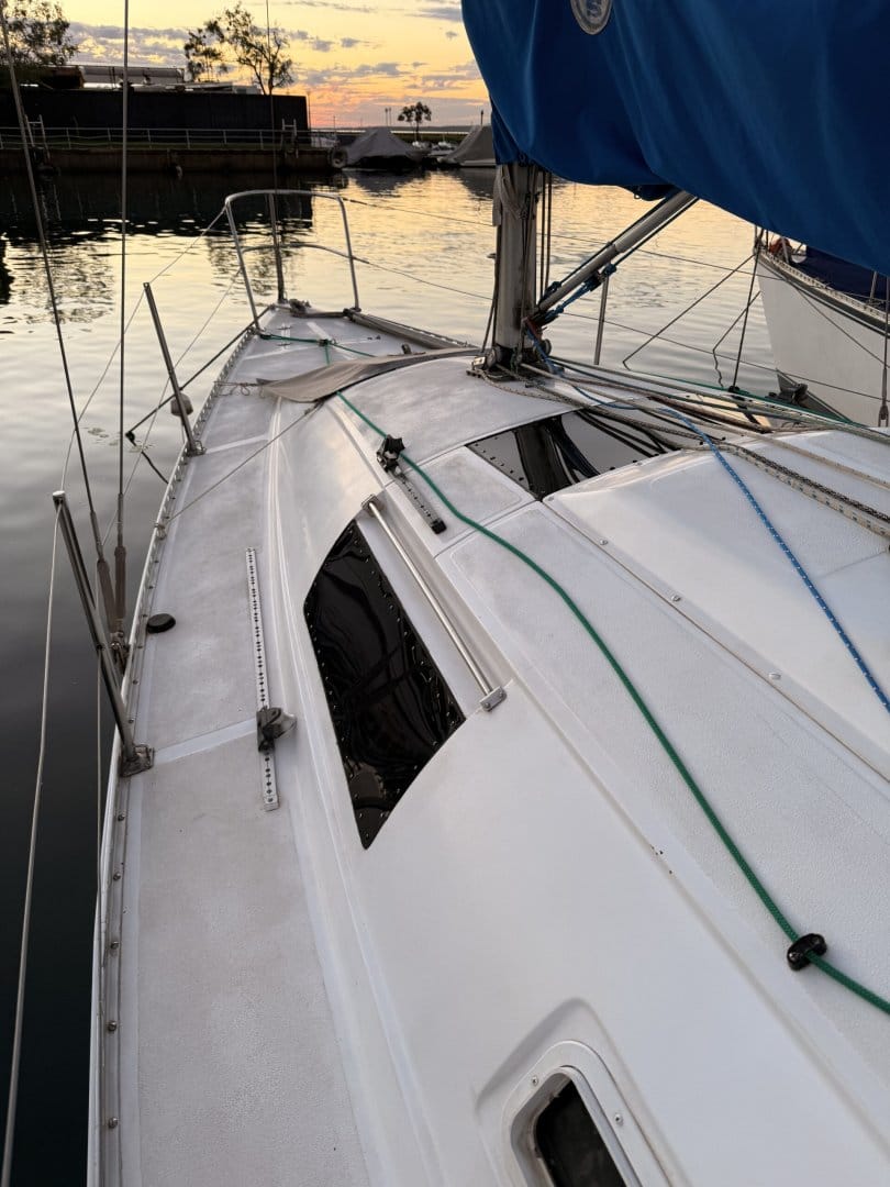 Motor Tohatsu 6 HP con tanque 25 L, instalación eléctrica nueva 220 V, cocina con horno y 2 anafes, mesa de navegación, chartplotter Lowrance + GPS Garmin, cabullería y fondo recién hechos (2025). Juego de velas de crucero North Sails (G1 casi nuevo) + juego de regata Mylar/Kevlar + spinnakers. Nada por hacerle.